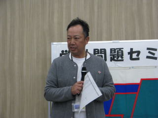 | 開会あいさつを行う豊嶋 四国電力総連会長 | 講師を務めていただいた白石 四国電力総連特別執行委員 |