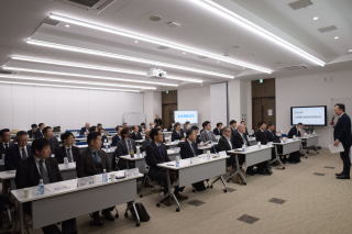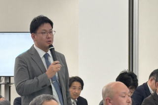 | 四国電力㈱吉田副部長による中期経営計画のご説明 | 感想を述べるSTNet Unionの木内執行委員長 |